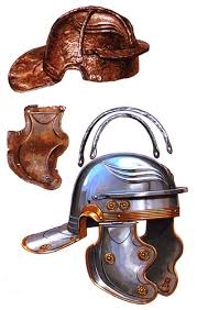 Como ya hemos apuntado, parece que durante la conquista de la Dacia el ejército romano tuvo que modificar su equipo para poder adaptarse al uso de las armas del enemigo, las cuales parecían incluso otorgarles cierta ventaja que debía ser al menos mitigada. Algunos escudos poseen bordes reforzados doblemente, pero es en los yelmos donde mejor podemos ver esta evolución.